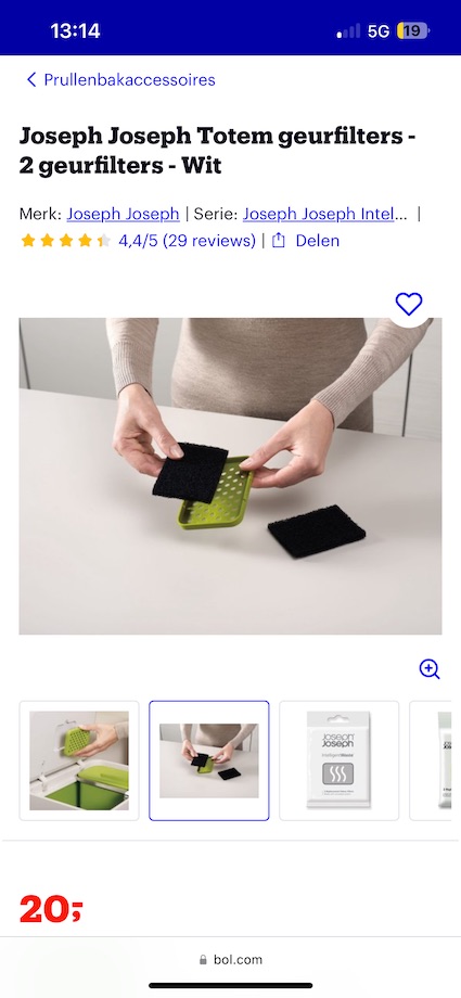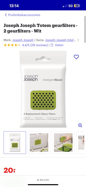 De lol die ik hierin heb, komt vooral door het feit dat je zo genaaid wordt met de originele Joseph Joseph filters. Omdat je ze nu eenmaal nodig hebt, en het een relatief klein bedrag is ten opzichte van de afvalbak zelf, gaat hier lekker een extra grote marge op. Daarmee verdient de producent nog jarenlang aan de afvalbak. Maar niet meer aan mij!
